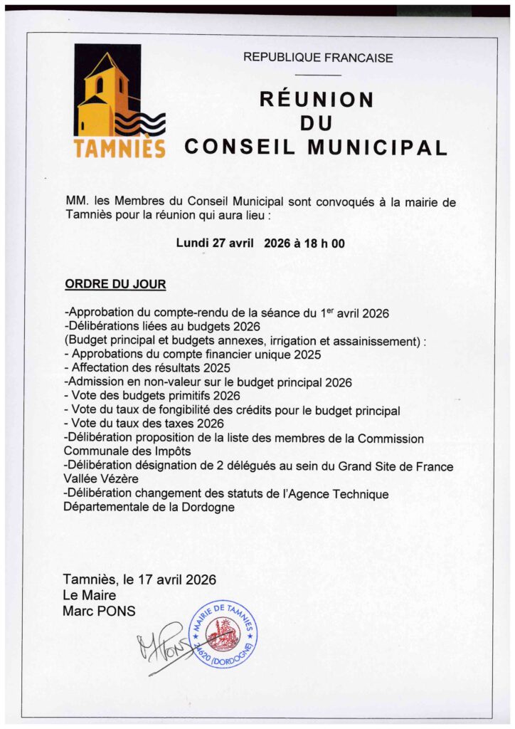 Liste des délibérations adoptées en séance du 1er avril 2026